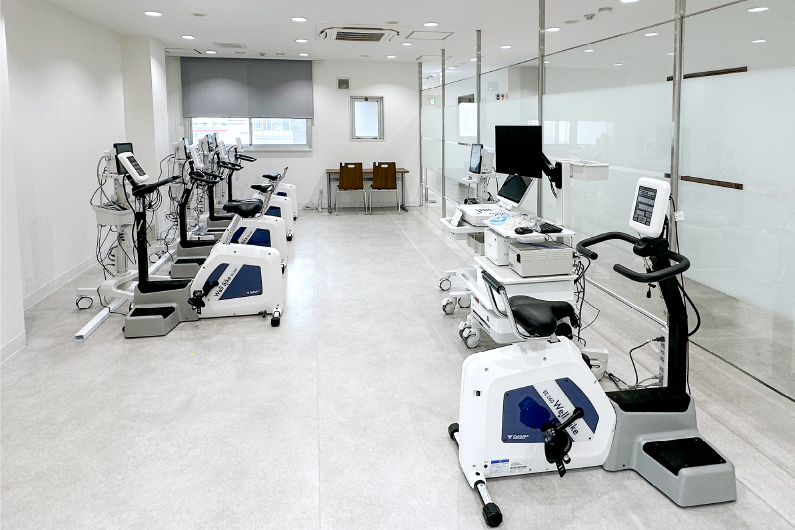 運動中の心電図、血圧、酸素濃度を測定し、心臓に負担をかけずに安全に行える最適な運動量を正確に決定します。(当院ではCPX検査を実施し、科学的な根拠に基づいた運動処方を行います。)
